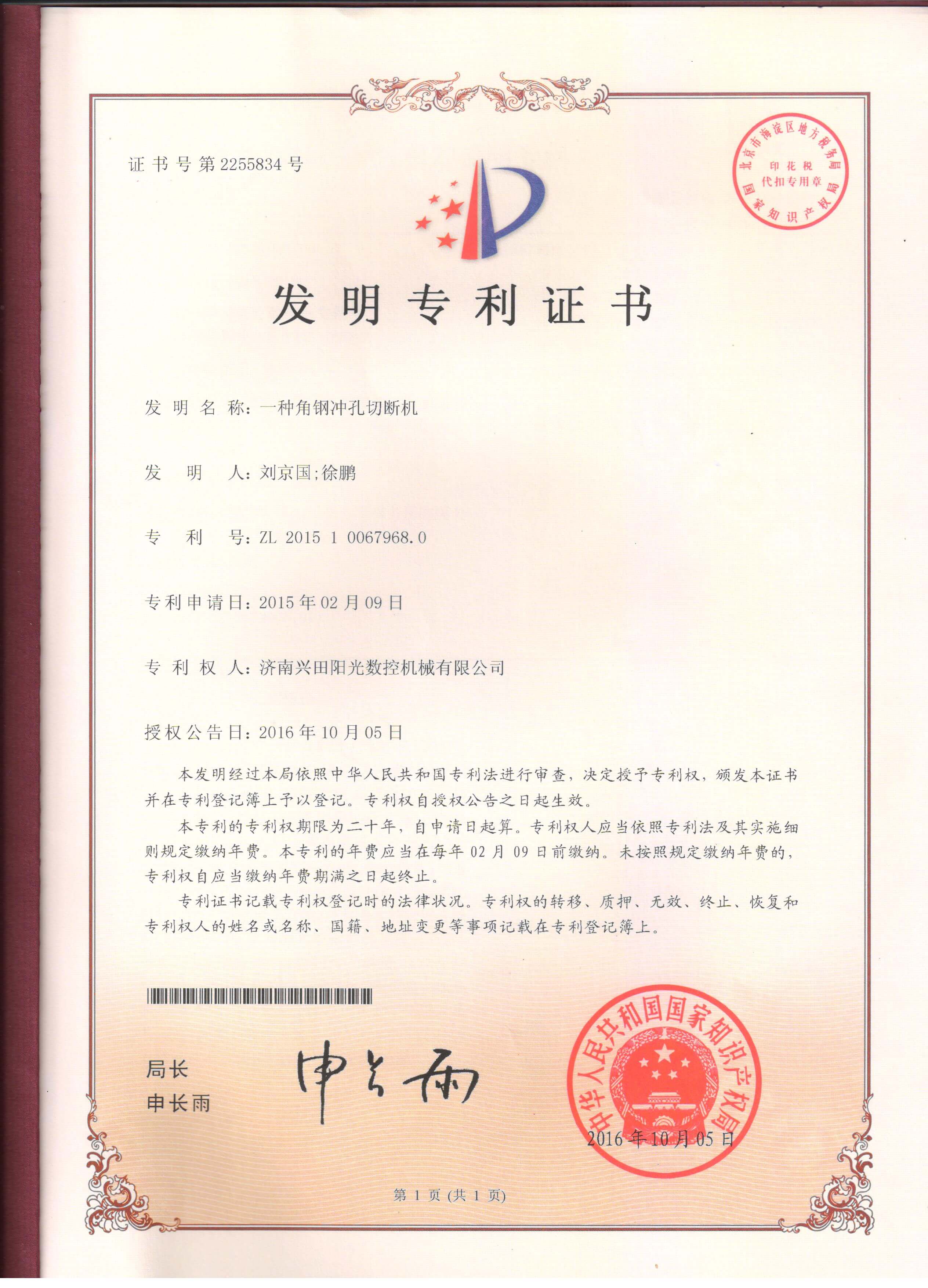• 專利證書
